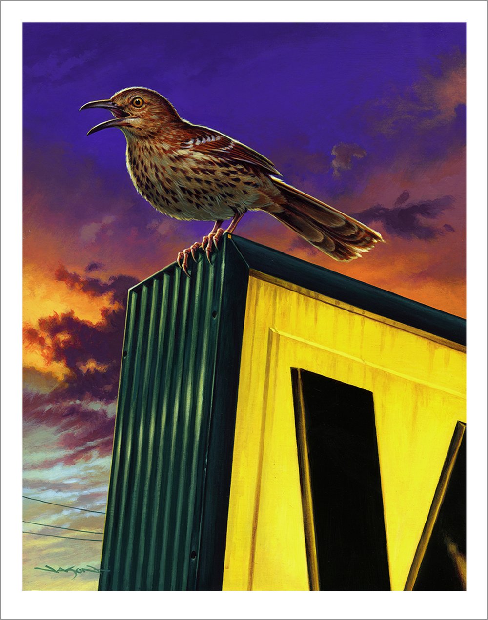 Signed and numbered 11" x 14" giclee print edition of 100. From my ongoing series Fast Food Birds.