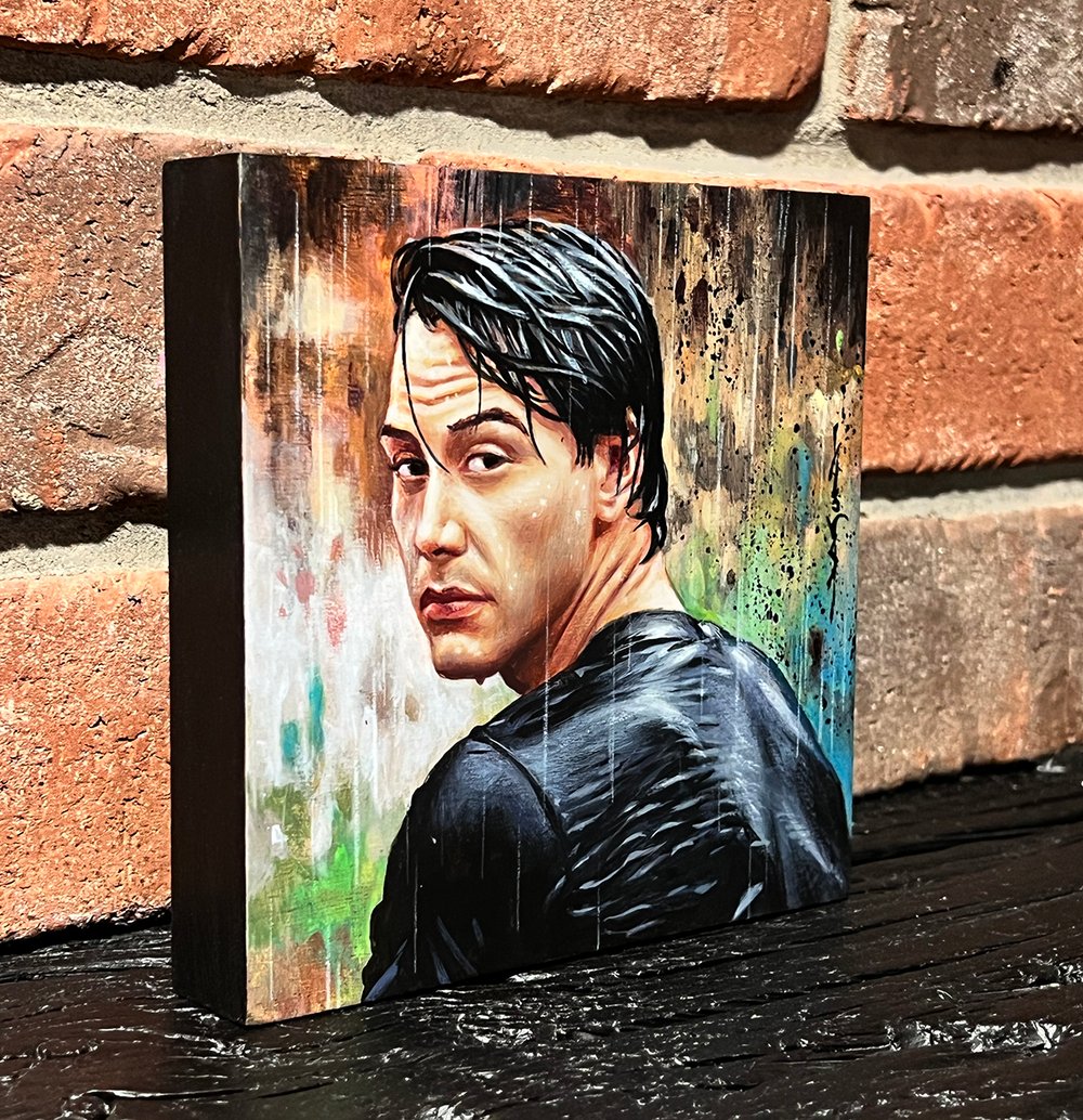An original, one-of-a-kind acrylic painting, on wood panel. From my series Keanu World Order.