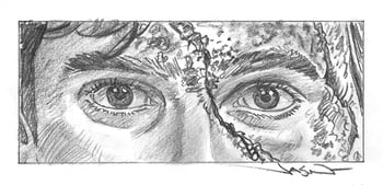 "Don Post 1975 Shatner Mask" - 6.75" X 2.75" original pencil drawing